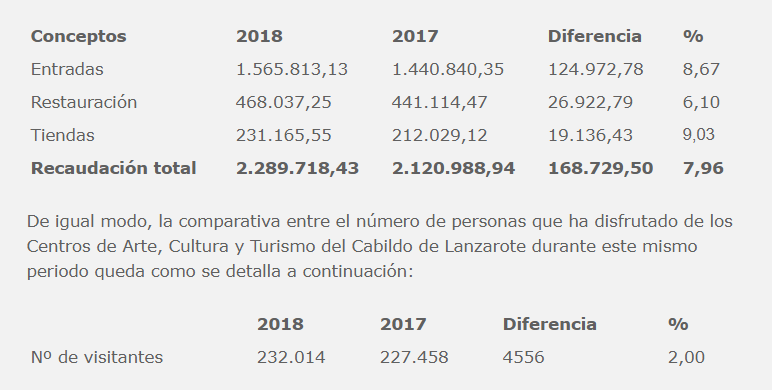 De igual forma, hay que destacar el incremento del 6,10% registrado en los ingresos de los servicios de restauración, esto es 26.922,79 euros, y que las tiendas facturaron un 9,03% más con respecto a enero de 2017, o lo que es lo mismo, 19.136,63 euros más.