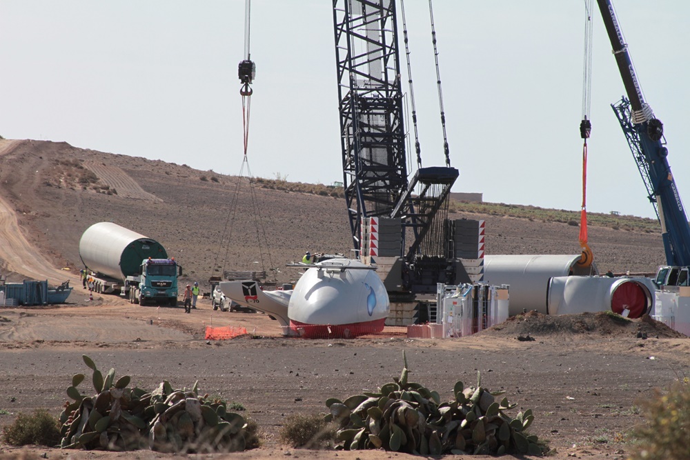 La instalación debe estar definitivamente montada a principios de 2018, porque tienen coincidir con los periodos en los que los que la fuerza del viento baja considerablemente en Lanzarote.