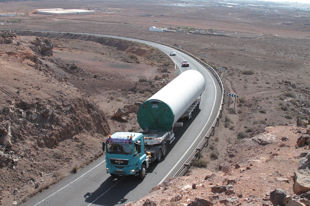 Los cuatro aerogeneradores del Parque Eólico Teguise I, ya están rumbo a su destino