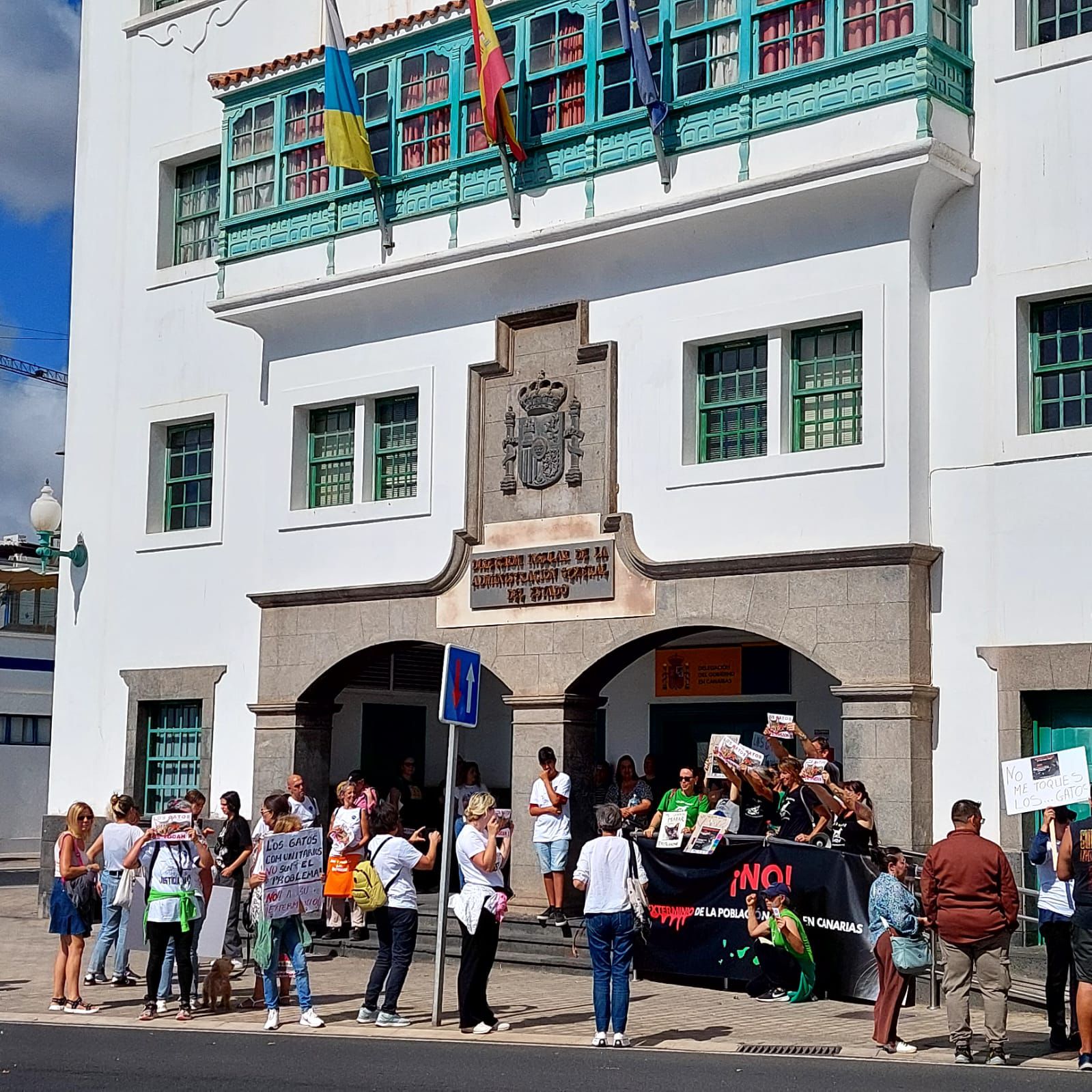 Los manifestantes se mostraron en contra de las políticas que proponen las asociaciones ecologistas tendentes a sacar los gatos de La Graciosa. Consideran que lo correcto es seguir con la política de esterilización que se ha venido llevando a cabo hasta el momento.