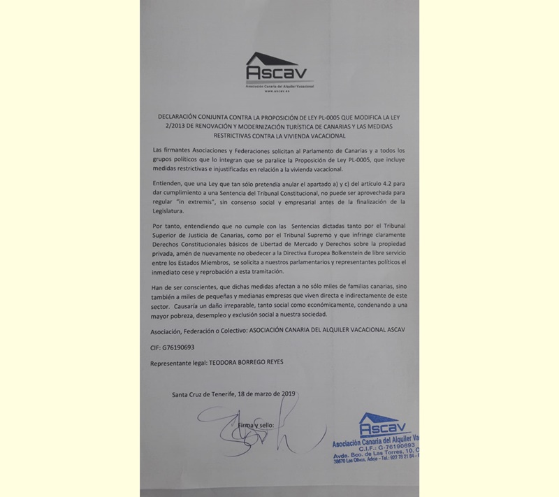 "Ha venido para establecerse, es una nueva modalidad turística que se expande vertiginosamente por todo el mundo, por lo que es necesario asumir sus ventajas de forma que sea beneficioso para todos y trabajar concienzudamente para atajar los inconvenientes que incorpora en el mercado, en algunos casos distorsiones significativas de precios, escasez de alquileres de larga duración y deterioro en la convivencia ciudadana" indican en un comunicado conjunto.