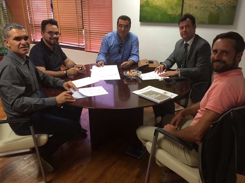 El consejero de Turismo del Cabildo de Lanzarote, Echedey Eugenio, y el consejero delegado de la Sociedad de Promoción Exterior del Lanzarote (SPEL) Héctor Fernández, por un lado, y Jesús Ignacio Medina y Javier Suárez, en nombre de Costa Teguise Golf S.L. y de la Comunidad de bienes Campo de Golf Puerto del Carmen (Lanzarote Golf) respectivamente, de otro, suscribieron el pasado viernes los contratos que convierten a los campos de golf de la isla en nuevos patrocinadores de la Sociedad de Promoción Exterior de Lanzarote (SPEL). De este modo, el desarrollo evolutivo de esta Entidad de gestión público-privada adoptado en el seno del Consejo de Administración de julio de 2013 sigue creciendo y sumando esfuerzos en favor de la toma de decisiones colegiadas y la financiación conjunta para la promoción turística de la isla.