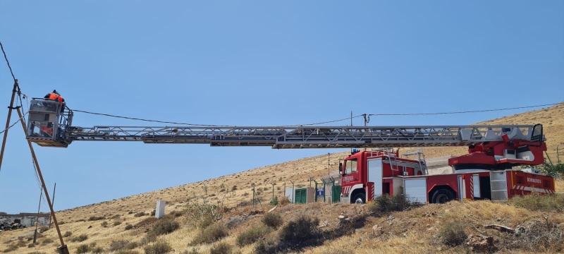 Además, los Bomberos atendieron la caída de un cable de electricidad en Montaña Blanca que no permitía el tránsito de vehículos por un camino de tierra. Procedieron mediante la ayuda de la auto escalera a fijar el cable de forma provisional con cuerda, en el lugar inicial. Acudieron al lugar gentes de la Guardia Civil.