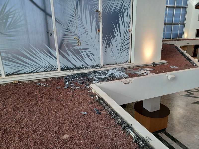 Uno de los más llamativos fue el desprendimiento de una fachada del Hotel Barceló de Costa Teguise, en la Avenida del Mar de la localidad turística. Al llegar al lugar, una vez alertados, ya estaban desplazados en la zona agentes de la Policía Local y el propio personal de mantenimiento del establecimiento había acordonado la zona.