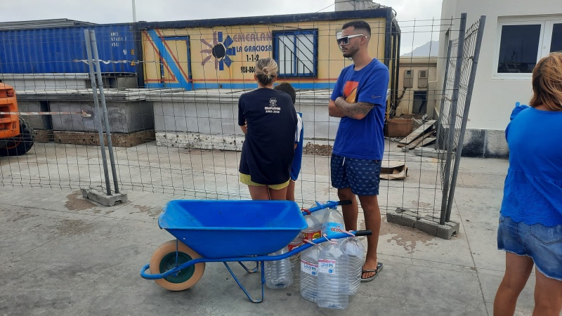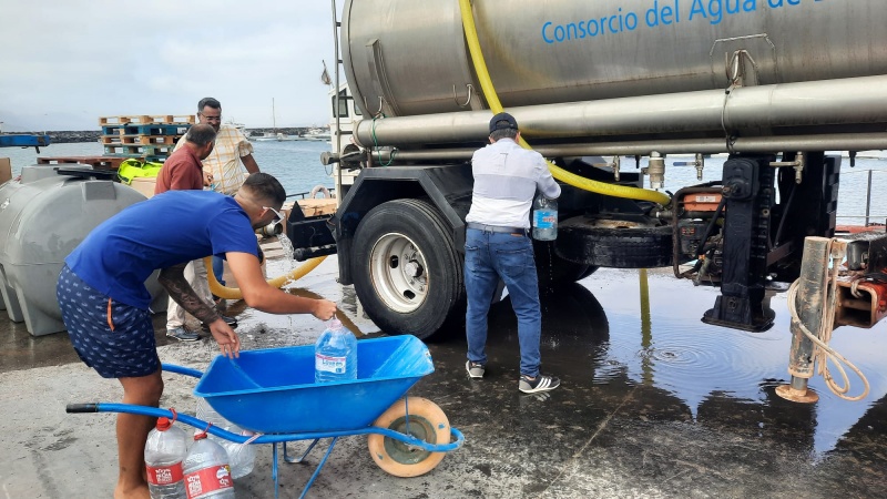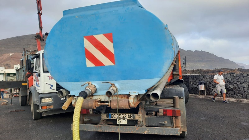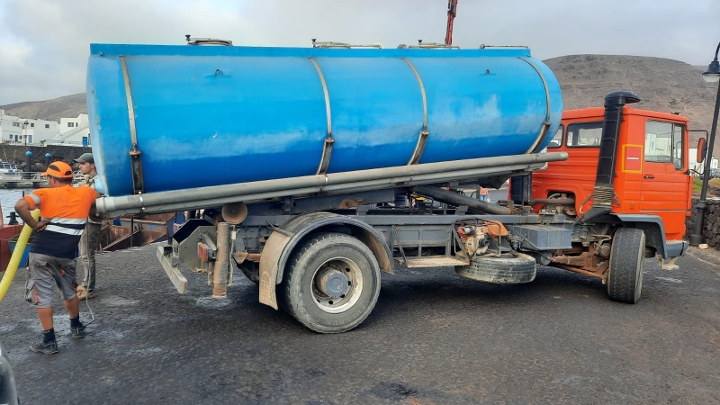 De esta manera, los 2.500 gracioseros residentes y turistas llenarán en las próximas horas, y días, sus envases a través de los grifos laterales de la citada cisterna, que será rellanada de forma continua con una cuba que estará dando viajes entre Lanzarote y La Graciosa a bordo de una barcaza, de forma permanente, y hasta el momento que la avería quede resuelta y el suministro habitual pueda restablecerse con normalidad.