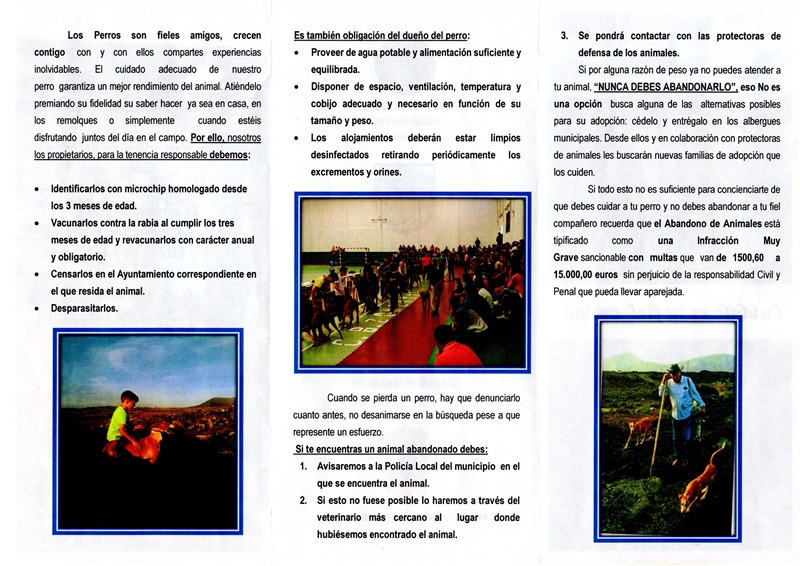 A este respecto, la Nueva Sociedad de Cazadores, con la colaboración de su servicio de guardería, ha elaborado y repartido a sus socios trípticos sobre el adecuado cuidado de los perros, la normativa y cómo actuar ante una pérdida, extravío o el encontrarse con un can en el campo.