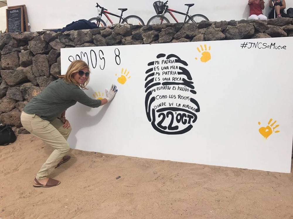 Para visibilizar esta petición, los nacionalistas se trasladaron a La Graciosa, donde realizaron a actividad "Somos 8", plasmando en un mural una parte del poema de Niclolás Estévanez "mi patria es una isla, mi patria es una roca, mi espíritu es isleño como los riscos donde vi la aurora" junto a las huellas de todos los canarios allí presentes para reafirmar la solidaridad en la lucha de La Graciosa para que se le reconozca como isla habitada.