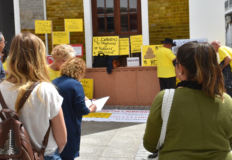 Con pancartas de 'O defiendes tu pensión o te roban a traición', 'Que recorten sus pensiones diputados y Borbones', 'Más pensión y menos corrupción' o 'Recorte de pensiones, oficio de ladrones', los pensionistas secundaron en Arrecife la convocatoria organizada por los sindicatos y las distintas plataformas ciudadana.