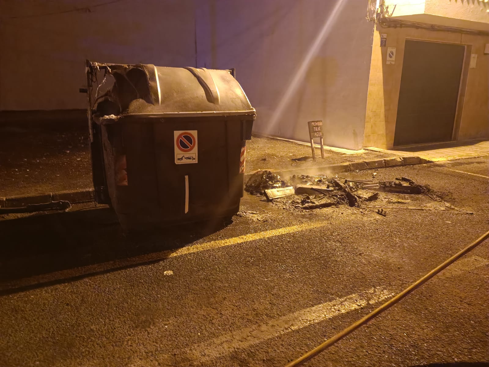 El siguiente incendio llevó los Bomberos a la calle Granada. Al llegar al servicio se constató el incendio en tres contenedores, uno de basura orgánica, otro de vidrio y otro de cartón. Se procedió a la extinción con agua pulverizada y chorro.