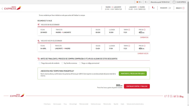 Las compañías áreas suelen subir sus tarifas en épocas señaladas. En este caso, Iberia Express las ha incrementado de una manera prohibitiva. Tal y como se puede apreciar, un turista no residente pagaría casi 900 euros por un viaje a la isla, si además viene con familia, las vacaciones se convierten un viaje de lujo.