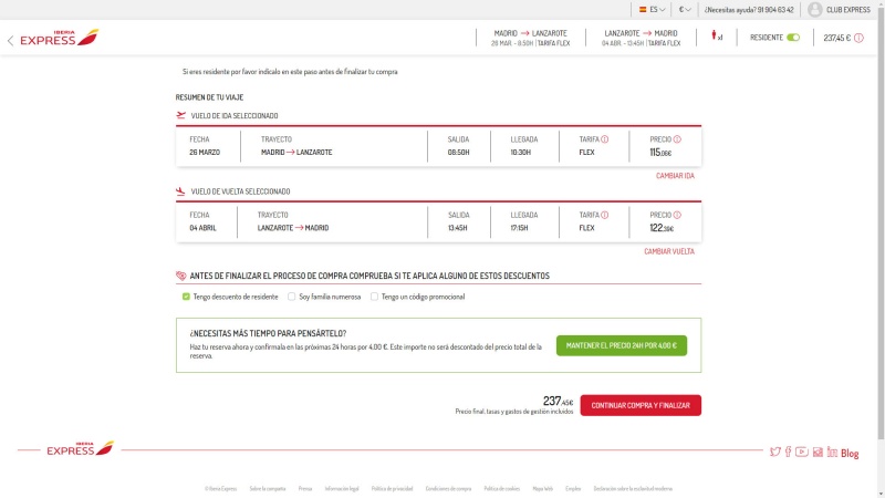 El precio de este billete, siendo residente, tampoco es ningún regalo, y hay que tener en cuenta que los canarios tienen un 75 % de descuento.