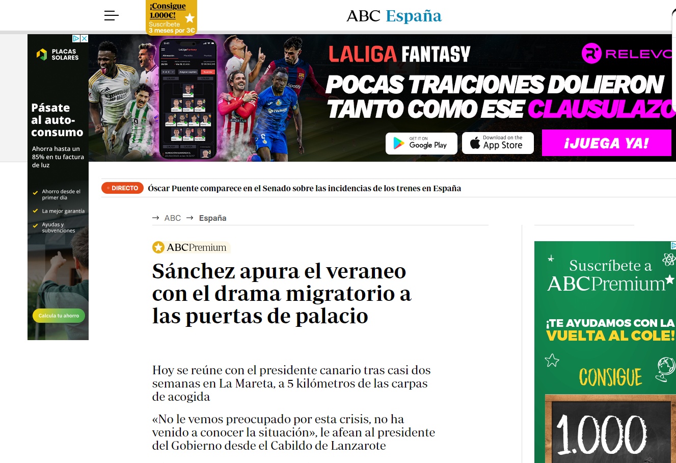 No ha sido sencillo, pero, tras mucho insistir, el presidente de Canarias, Fernando Clavijo, ha logrado reunirse este viernes con el presidente del Gobierno de España, Pedro Sánchez, que pasa unos días de vacaciones en la isla. En este encuentro, el punto principal será la crisis migratoria sin precedentes que sufren las islas Canarias y de la que se hacen eco este viernes varios periódicos nacionales como El Mundo o el ABC.