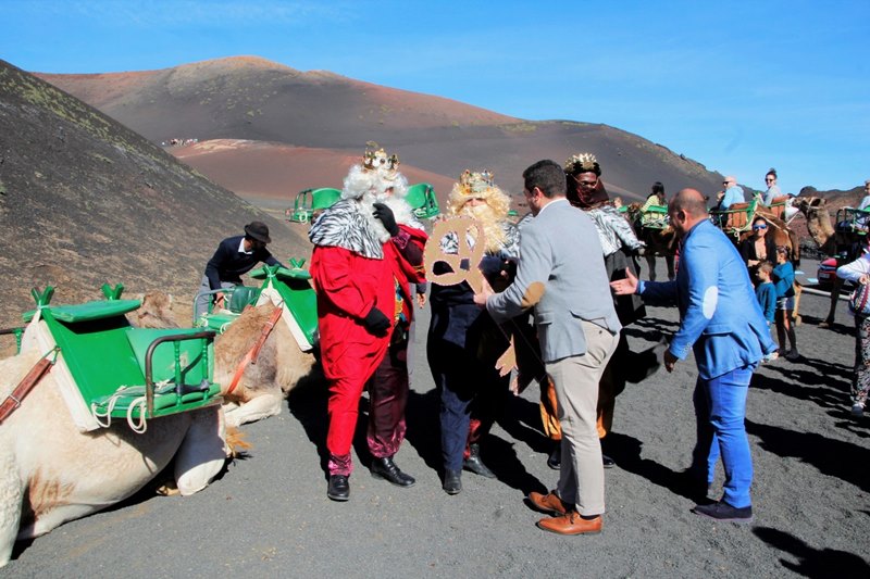 Como en el municipio de Yaiza, la figura del camello es protagonista en las cabalgatas de muchas localidades dentro y fuera de Canarias, así, la estampa de sus Majestades en Timanfaya con las Montañas del Fuego como telón de fondo evocó esa imagen iconográfica de los Reyes a lomo de camello atravesando paisajes desérticos. Los Reyes fueron guiados en Timanfaya por Francisco Mesa, el camellero más joven censado en la Isla y símbolo del relevo generacional del sector.