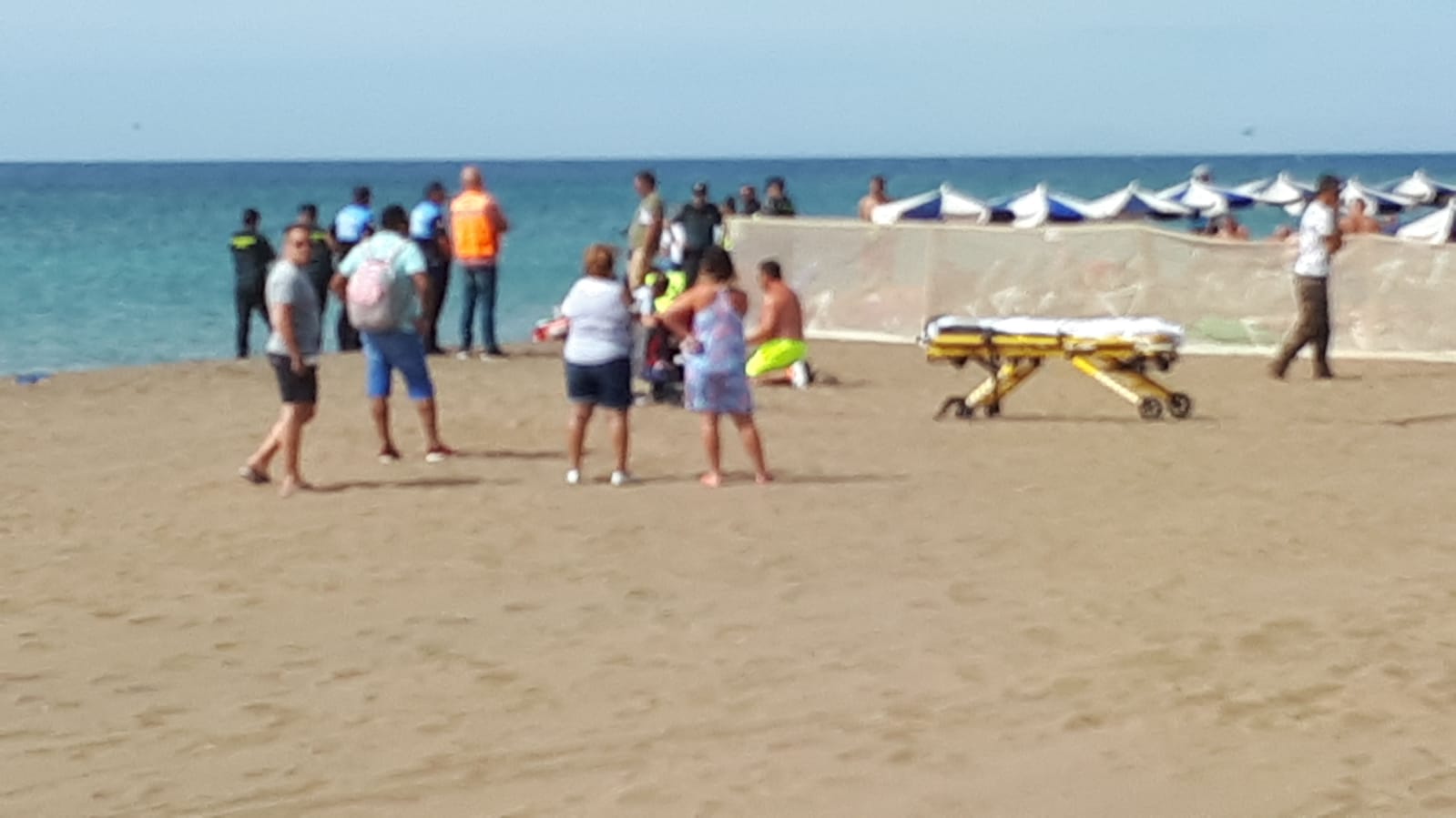 Los socorristas de la playa de Matagorda en Puerto de Carmen, trataban de salvarle la vida a un turista que había sufrido una parada cardiorrespiratoria.