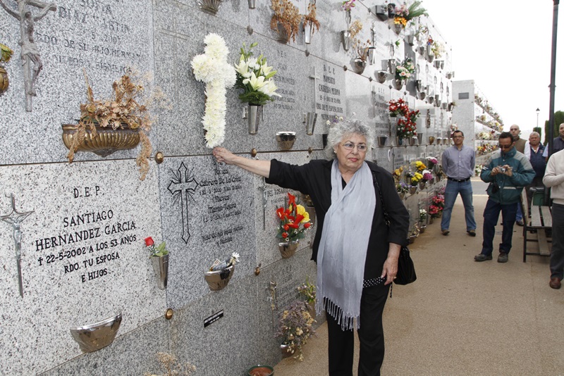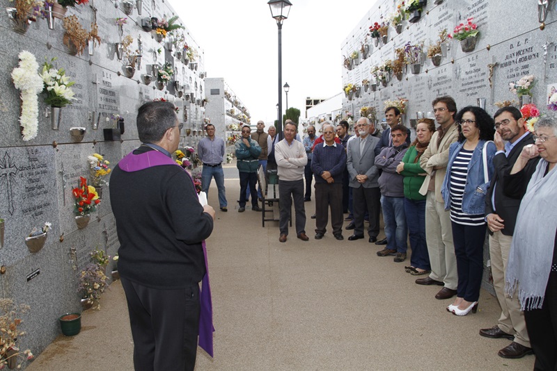 La viuda de Jesús Soto y el presidente del Cabildo de Lanzarote depositaron ramos de flores en su tumba. Por su parte, el párroco de la iglesia de San Ginés, Miguel Hernández, dedicó unas palabras al fallecido y rezó una oración en su memoria.