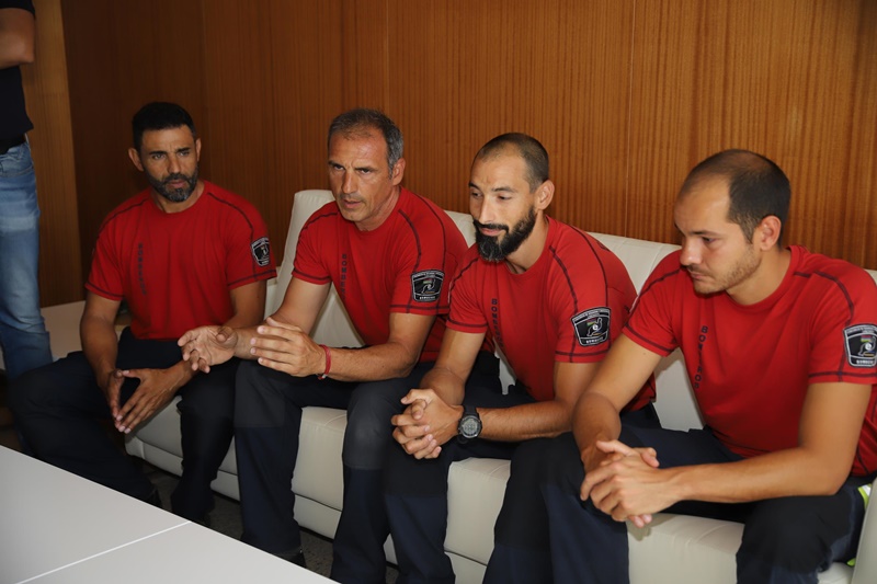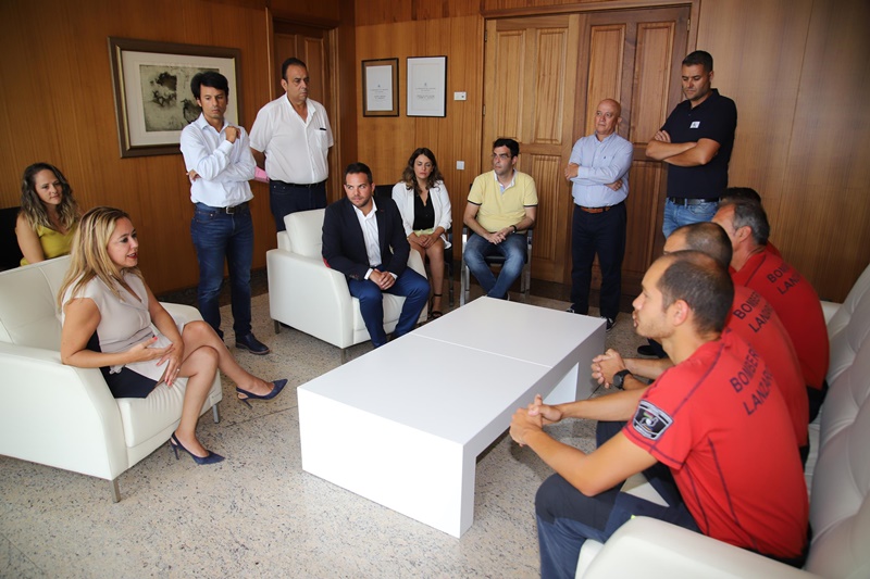 La presidenta del Cabildo, María Dolores Corujo, ha felicitado a los bomberos Roberto Mira, Santiago Montesdeoca, Jorge Santana y Domingo Crespo. Todos ellos integrantes del dispositivo que se envió para asistir en las labores de extinción en Gran Canaria y que, según Corujo, "deben estar en nuestra memoria por su valentía, solidaridad y buen hacer" en el trágico incendio de la isla vecina.
