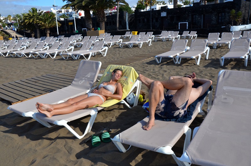 Los primeros turistas comenzaban este miércoles por la mañana a utilizar las nuevas hamacas de Puerto del Carmen, concretamente las situadas en Playa Grande. La empresa adjudicataria del servicio, Jandía First Service On Beach, comenzaba a primera hora su instalación.