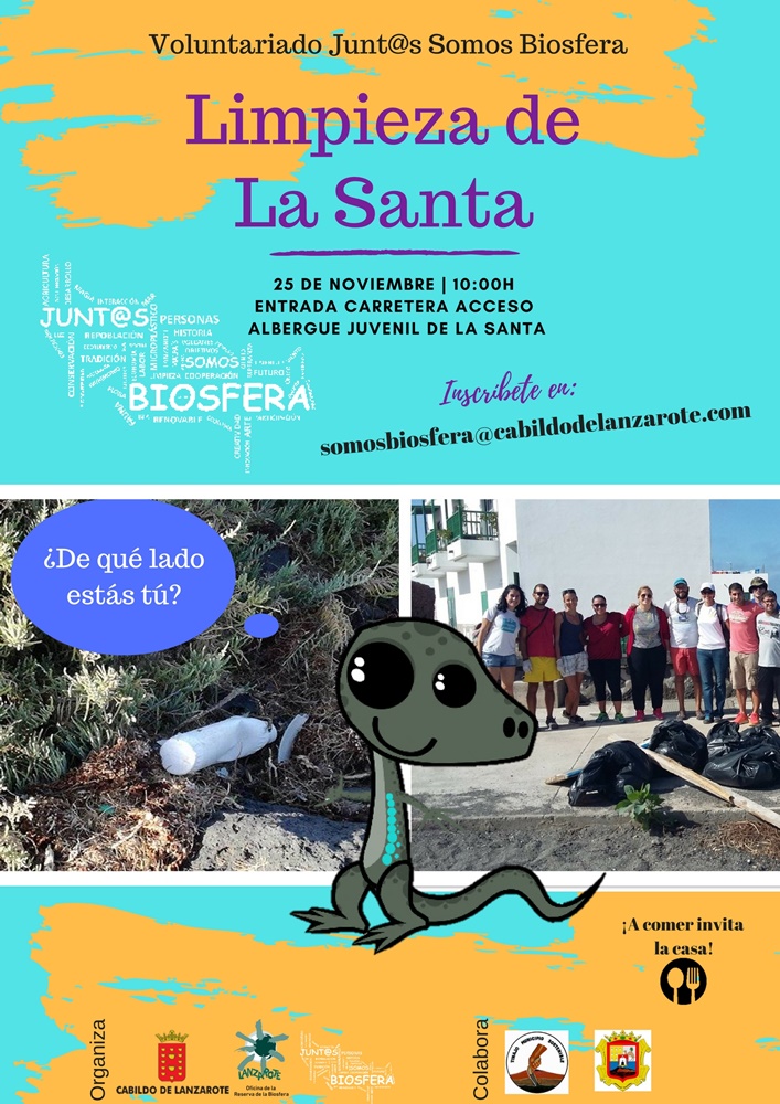 La conservación y protección de Lanzarote es una tarea de toda la sociedad y para cumplirla es necesario trabajar activamente de manera colaborativa. Con esta motivación surge "Junt@s somos Biosfera", el programa de voluntariado puesto en marcha por la Oficina de la Reserva de la Biosfera del Cabildo de Lanzarote. La última actividad que llevará a cabo en el año 2017 será la limpieza del litoral de La Santa, en el municipio de Tinajo.