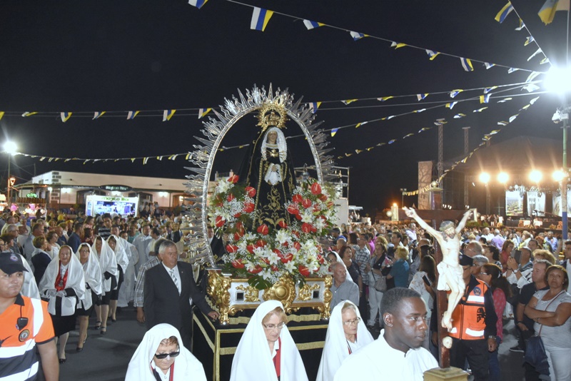 Tras la misa, la imagen de la Virgen fue en procesión hasta la iglesia acompañada de una multitud de fieles que no quiso perderse la solemne eucaristía en el día grande de la patrona de los lanzaroteños.