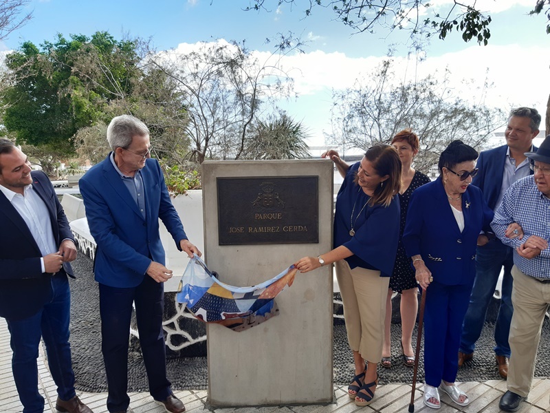 La alcaldesa de Arrecife, Astrid Pérez, asistió al acto de descubrimiento de la placa con la denominación de Parque José Ramírez Cerdá, con la asistencia de José Juan Ramírez Marrero, su hijo y presidente de la Fundación César Manrique. En el acto, además, estuvieron los hermanos de César Manrique, Juana Manrique Cabrera y Carlos Manrique Cabrera. José Juan Ramírez Marrero, emocionado este martes en el acto tras descubrir la placa, estuvo acompañado por su esposa, y su hijo e hija, nietos del que fuera el valedor de Manrique en toda su obra artística en la Isla como presidente del Cabildo conejero.