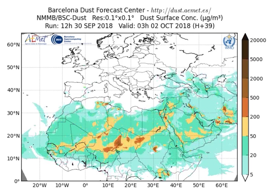 Además este calor de otoño viene acompañado de una intensa calima procedente el Sáhara que continuará durante varios días en Lanzarote. Los cielos estarán poco nubosos o despejados, con algún intervalo de nubes medias y altas en la primera mitad del día. Viento del nordeste flojo a moderado, más intenso por la tarde.
