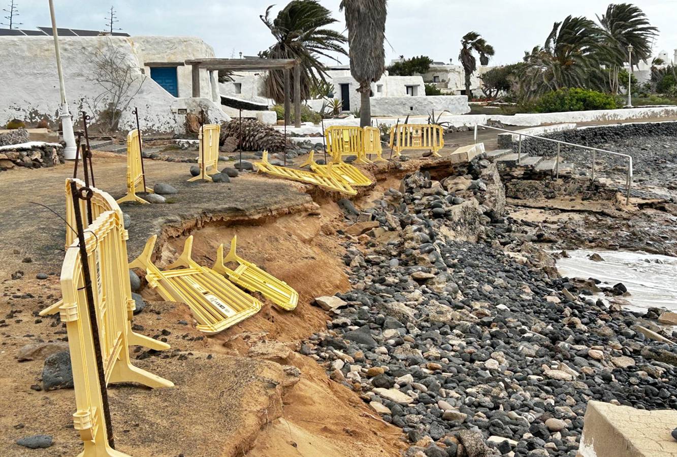 Las incidencias se extendieron igualmente al interior de la isla. En Mozaga, una pitera cayó sobre un cable de luz en la calle Sancocho, y en Los Valles se retiraron ramas partidas en la calle Mamerto Pérez. Por la tarde, en Punta Mujeres, en el municipio de Haría, se intervino tras la caída de una farola en la calle Los Matos.