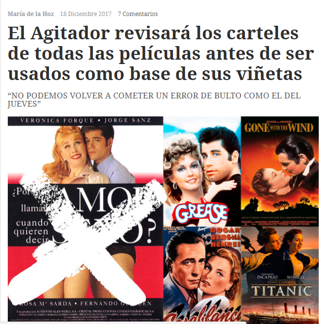 Antes la unanimidad de las críticas (de momento solo la secretaria general del PSOE, Dolores Corujo, está analizando la situación antes de pronunciarse) Meca ha respondido hoy con sarcasmo y cierto enfado en el propio Agitador anunciando que ante el escándalo originado a partir de ahora revisará todos los carteles de películas que son utilizados y manipulados en su revista para criticar a sus adversarios políticos.