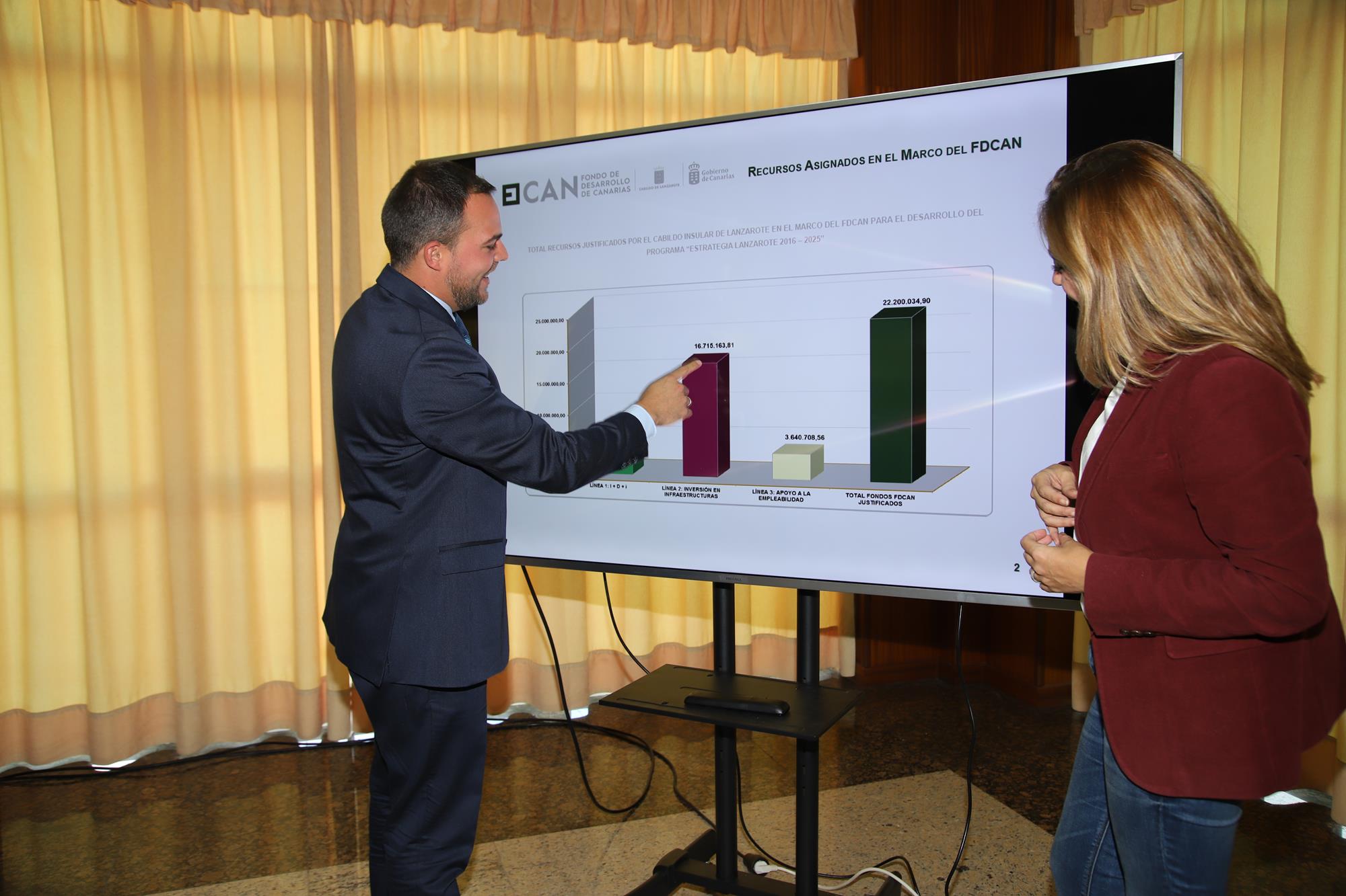 A través de unos gráficos, el consejero explicó las tres líneas de financiación de estos fondos: la línea 1 dedicada a proyectos de I+D+I; línea 2 de Inversión en Infraestructuras y la línea 3 de Apoyo a la Empleabilidad. Medina se mostró muy satisfecho por el trabajo realizado y avanzó que "ya tenemos planificada la anualidad de 2019 y 2020 para coordinar y redactar los proyectos y las obras que Lanzarote y La Graciosa necesitan".