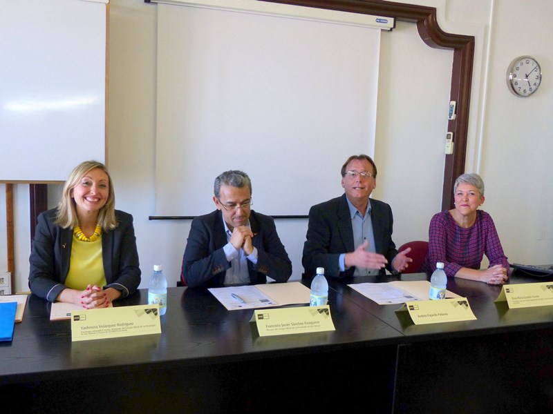 El decano del Colegio de la Psicología de Las Palmas, Francisco Sánchez Eizaguirre, el secretario del Centro Asociado de la UNED en Lanzarote, Ándres Fajardo; Yashmina Velázquez delegada del COPLP en Lanzarote y Rosa María Guisado, psicóloga y responsable del Centro de Orientación e información de Empleo de la UNED (COIE), fueron los encargados de inaugurar estas jornadas en el Aula Magna del centro educativo.