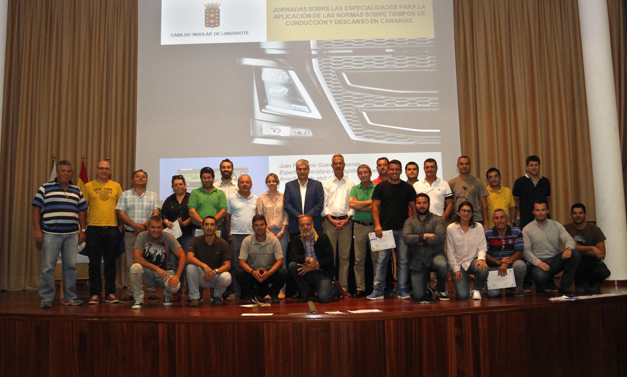El vicepresidente del Cabildo y consejero de Transportes del Cabildo de Lanzarote, José Juan Cruz, hizo entrega hoy viernes de los diplomas acreditativos de asistencia al curso sobre el tacógrafo y los tiempos de conducción y descanso en el transporte por carretera.