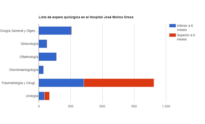 Las listas de espera quirúrgicas siguen descendiendo en el Hospital Molina Orosa. Esto es lo que se desprende de los datos oficiales hechos públicos por el Servicio Canario de Salud, según los cuales el cierre de abril de este año había 1.784 personas esperando a ser operadas frente a las 1.922 que había al cierre de 2015, es decir, 138 menos.