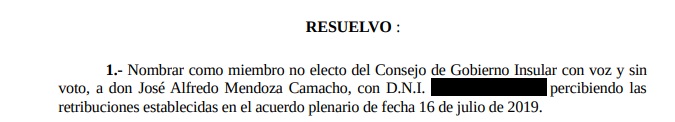 Continúa el baile y los movimientos de las piezas políticas tras los respectivos ceses en el Ayuntamiento de Arrecife y el Cabildo de Lanzarote no se detienen. Alfredo Mendoza, el que fuera teniente de alcalde de la capital y también concejal de Festejos y Policía, será el nuevo consejero de Obras Públicas, Planificación y Proyectos y Deportes.