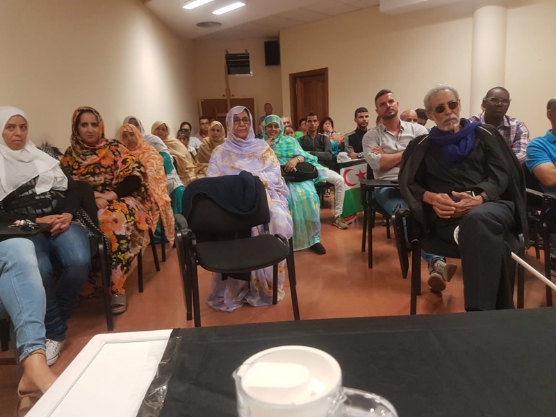 El debate se inició con la intervención de Mohamed Salem Bucharaya, miembro histórico del colectivo saharaui, sobre el significado de ese 12 de Octubre, donde hace 43 años, miles de saharauis, reunidos en la región de Ain Bentili, proclamaban la Unidad Nacional Saharaui. Un movimiento preventivo que buscaba anticiparse a una anunciada e inminente ofensiva marroquí que tomaría finalmente forma apenas tres semanas después con la Marcha Verde y posterior ocupación del Sáhara español. Desde entonces, cada 12 de octubre se celebra el Día de la Unidad Nacional Saharaui.
