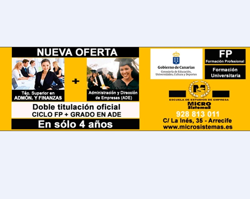Todas aquellas personas interesadas en ampliar esta información y realizar la matrícula podrán hacerlo a lo largo del mes de septiembre, dirigiéndose a las instalaciones de Microsistemas en C/ La Inés, 35 o poniéndose en contacto a través del teléfono 928 813011, así como aquellos que quieran matricularse en los otros ciclos formativos para el curso académico 2013-14: el Grado Superior en Higiene Bucodental y el de Grado Medio en Cuidados Auxiliares de Enfermería, en los que se podrá obtener una doble titulación: la del Ciclo Formativo correspondiente que curse el alumno y, por otro, la Acreditación Oficial Inglesa (A1, B1, B2). Las plazas son limitadas.