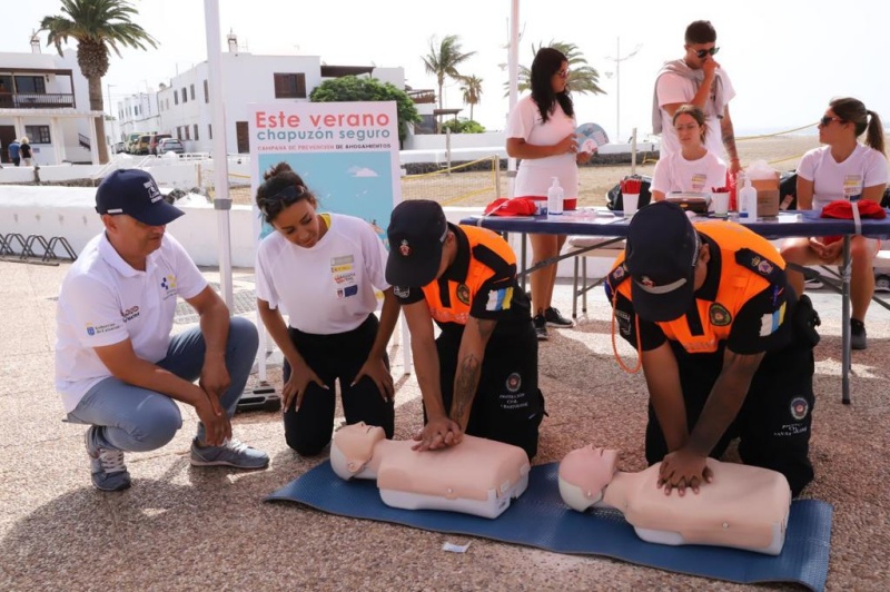 La iniciativa, que comenzó en julio, se trasladó el pasado viernes y sábado a la localidad de Playa Honda, en San Bartolomé, donde los alumnos del PFAE "Playas Seguras", junto con Cruz Roja, Protección Civil y personal del propio Consorcio, continuaron instruyendo a los bañistas en prácticas y hábitos preventivos para evitar accidentes y ahogamientos en la marea o en la piscina.