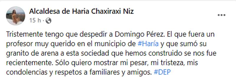 La alcaldesa norteña, Chaxiraxi Niz, muestra sus condolencias y destaca su labor docente y social