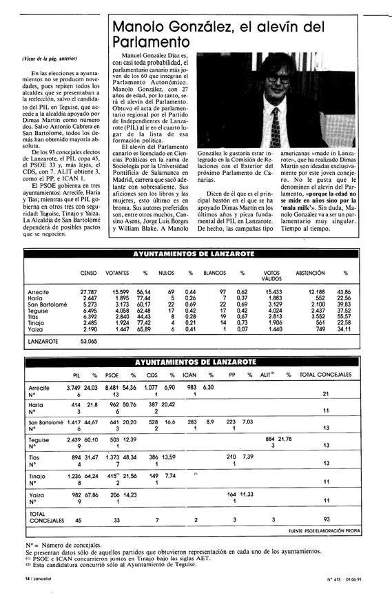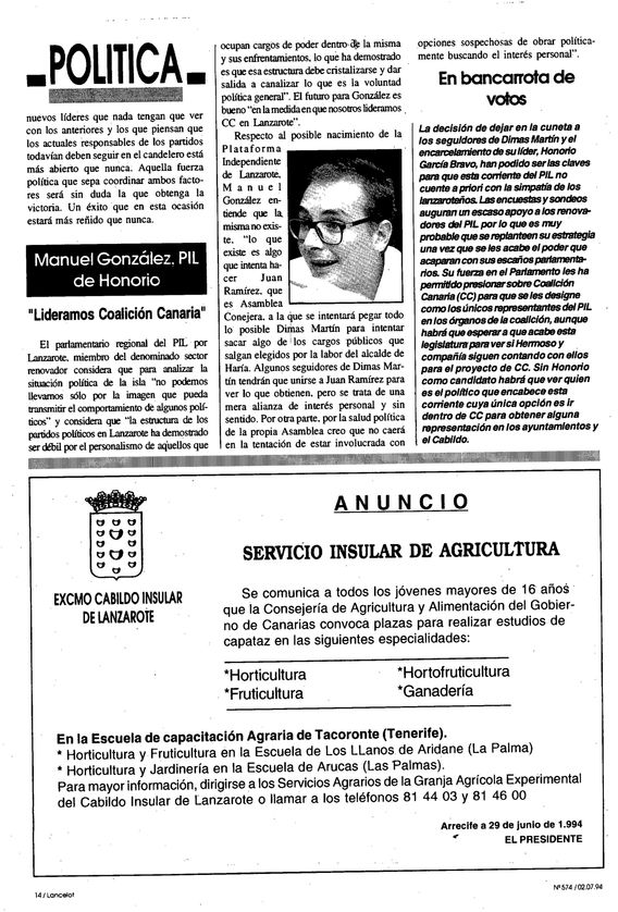 Muchos creen que gran parte del éxito populista que alcanzó el Partido Independiente de Lanzarote a principio de los años 90 se debió a la estrategia ideológica de Manuel González, quién encontró en Dimas un diamante en bruto al que pulió y con el que contraatacó al sistema establecido. Sobre todo supo explotar y dar protagonismo a la sociedad más abandonada como la agrícola y pesquera que fenecía y que no encontraba su hueco en la nueva Lanzarote.