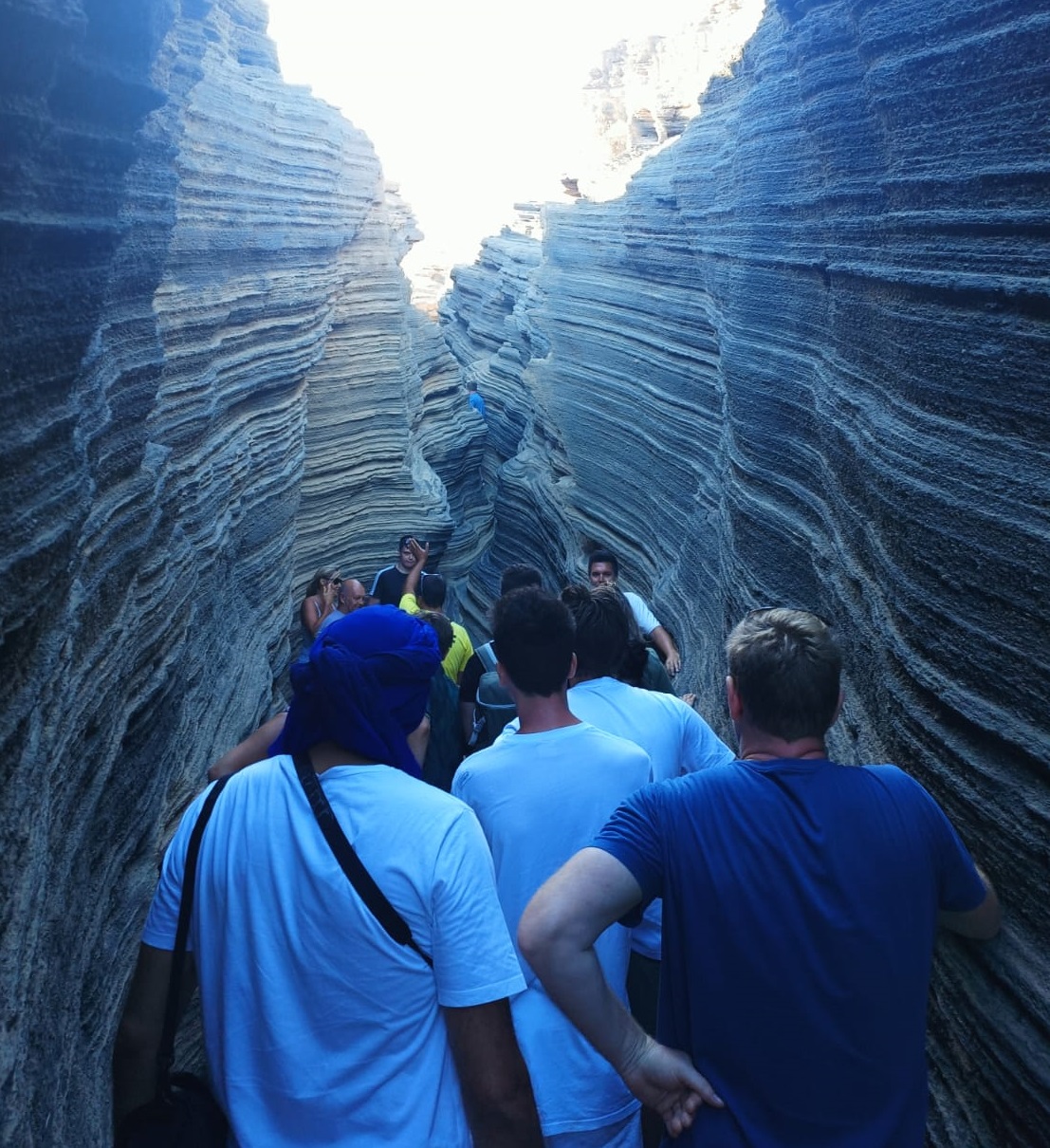 La gente sigue hacinándose y haciendo cola en Las Grietas que se ubican entre el municipio de Tías y de San Bartolomé; el fenómeno de las redes sociales y de los selfies lejos de "pasar de moda" va a más.