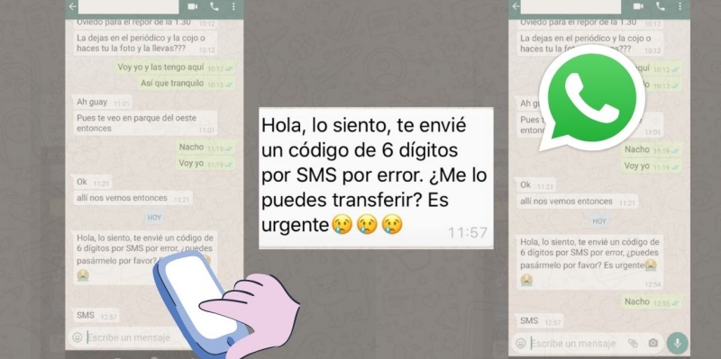 Según las denuncias recibidas por la Guardia Civil, los usuarios reciben un mensaje a través de WhatsApp que les dice “Hola, lo siento, te envíe un código de 6 dígitos por SMS por error, ¿lo puedes pasar a mí teléfono, por favor? es urgente”.
