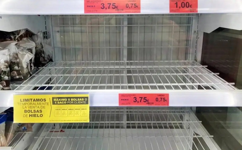 Lo cierto es que en muchos supermercados ya se ha limitado la compra de bolsas de hielo a una por cliente y muchos proveedores han alertado que la provisión no está asegurada debido al aumento de precios y sobre todo, a las sofocantes olas de calor.