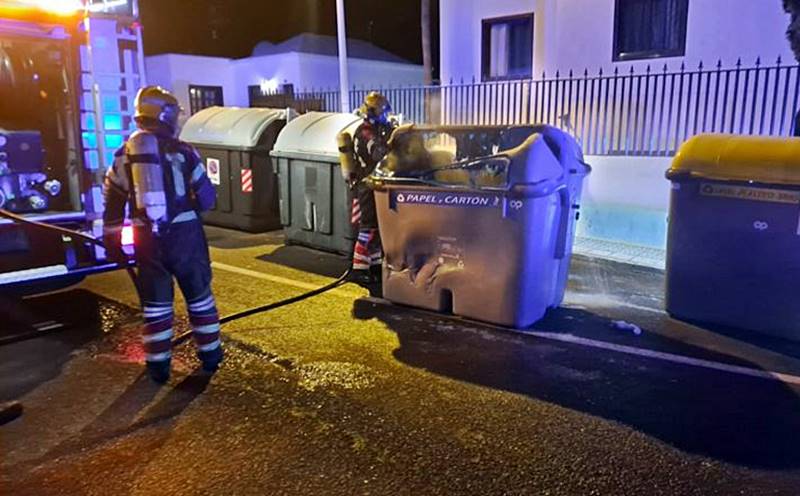 La pasado noche en Puerto del Carmen estuvo dominada por el fuego. Hasta cinco contenedores sufrieron incendios según información del Consorcio de Emergencias.