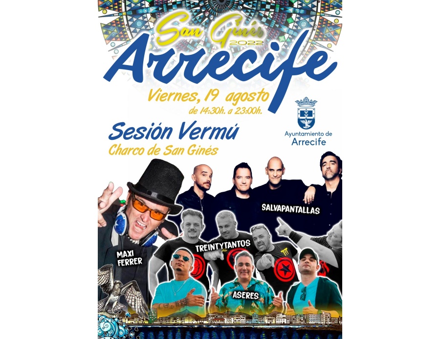 El Charco de San Ginés será escenario mañana viernes, de 14.30 a 22.00 horas, de una nueva ‘Sesión Vermú’ con motivo de la celebración de las Fiestas de San Gines organizadas por el Ayuntamiento de Arrecife que preside Astrid Pérez a través de la Concejalía de Festejos dirigida por Encarna Páez, que contará con las actuaciones de Maxi Ferrer, Treintaytantos, Salvapantallas y Aseres.