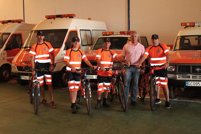 Llama la atención el vehículo más utilizado en verano, la bicicleta. Según el coordinador de Protección Civil Diego Sánchez "nos permite tener una mejor visibilidad con los ciudadanos y pasear por la Avenida Marítima o por la calle Real a buen ritmo y ahora cómodos".
