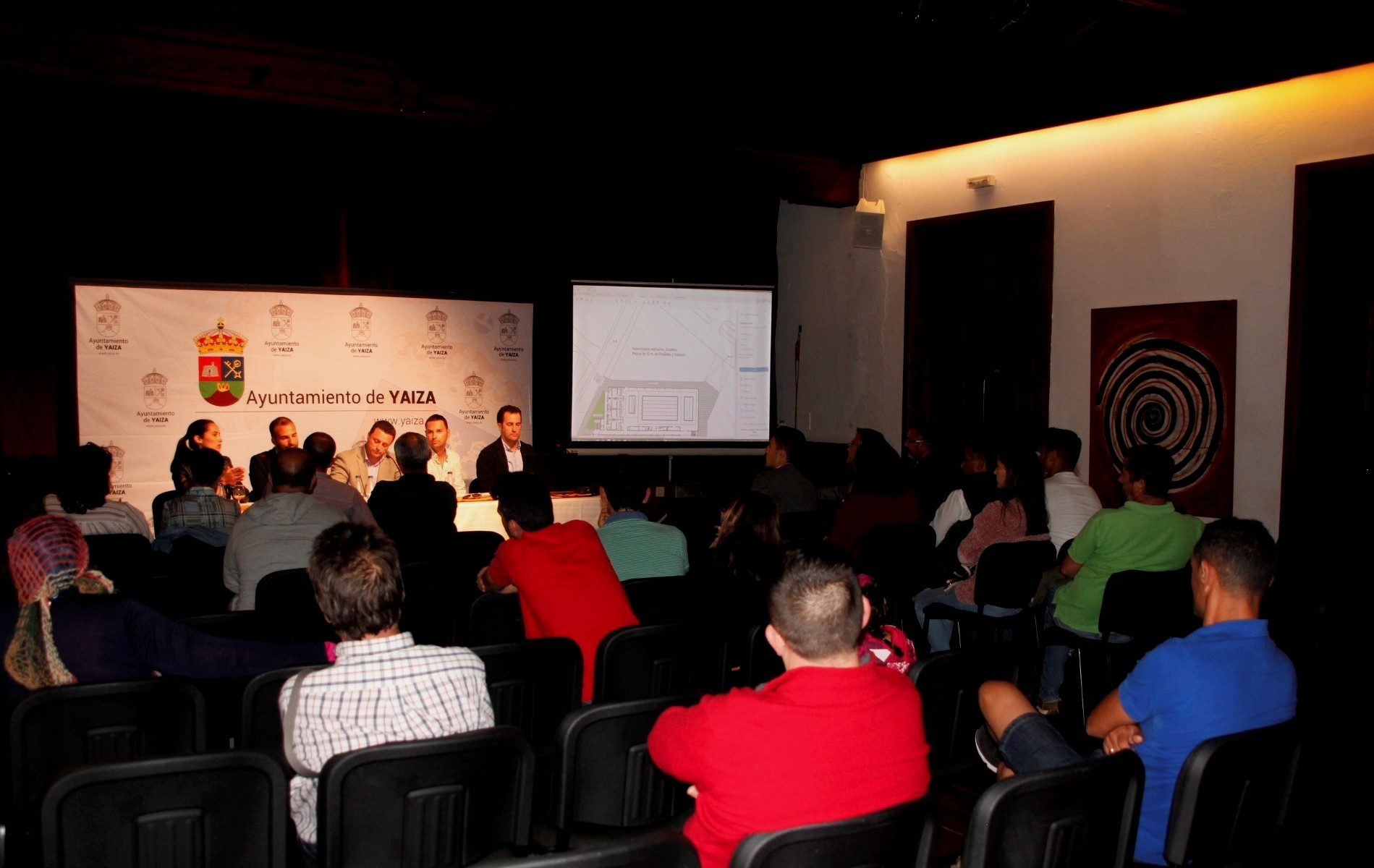 El concejal de deportes de Yaiza, Daniel Medina, el responsable municipal de Obras Públicas, Jonatan Lemes, y miembros del equipo redactor del proyecto de la firma Arana & Muñoz Edita S.L participaron junto al alcalde en el encuentro celebrado este lunes por la tarde en la Casa de la Cultura de Yaiza.