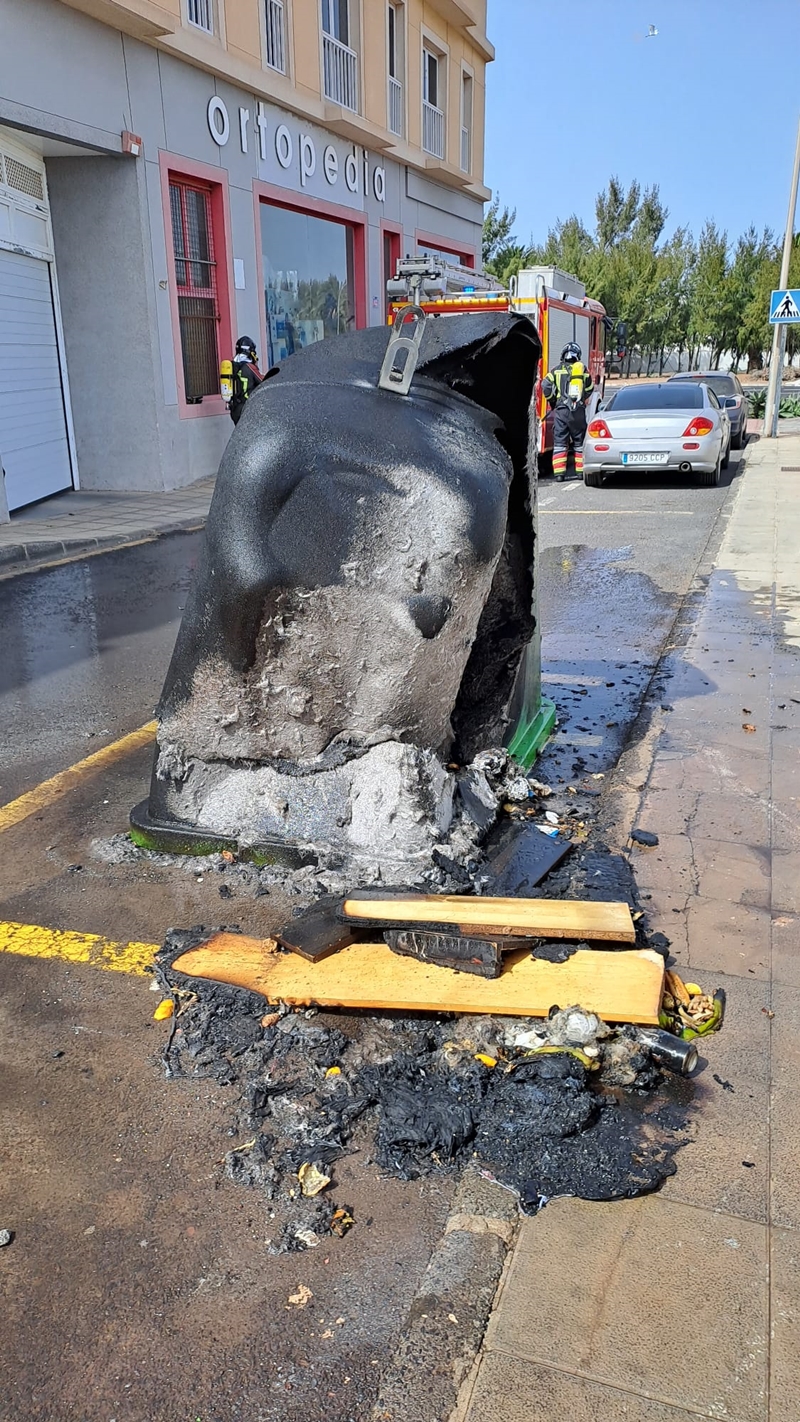A plena luz del día, sobre las 16.30 de este domingo, y en la calle Alfonso XIII de Arrecife volvía, para desgracia de la capital, la imagen de nuevos contenedores calcinados. El incendio se originó en un contenedor de vidrio que ardía en su totalidad y afectaba a otro cercano de residuos orgánicos.