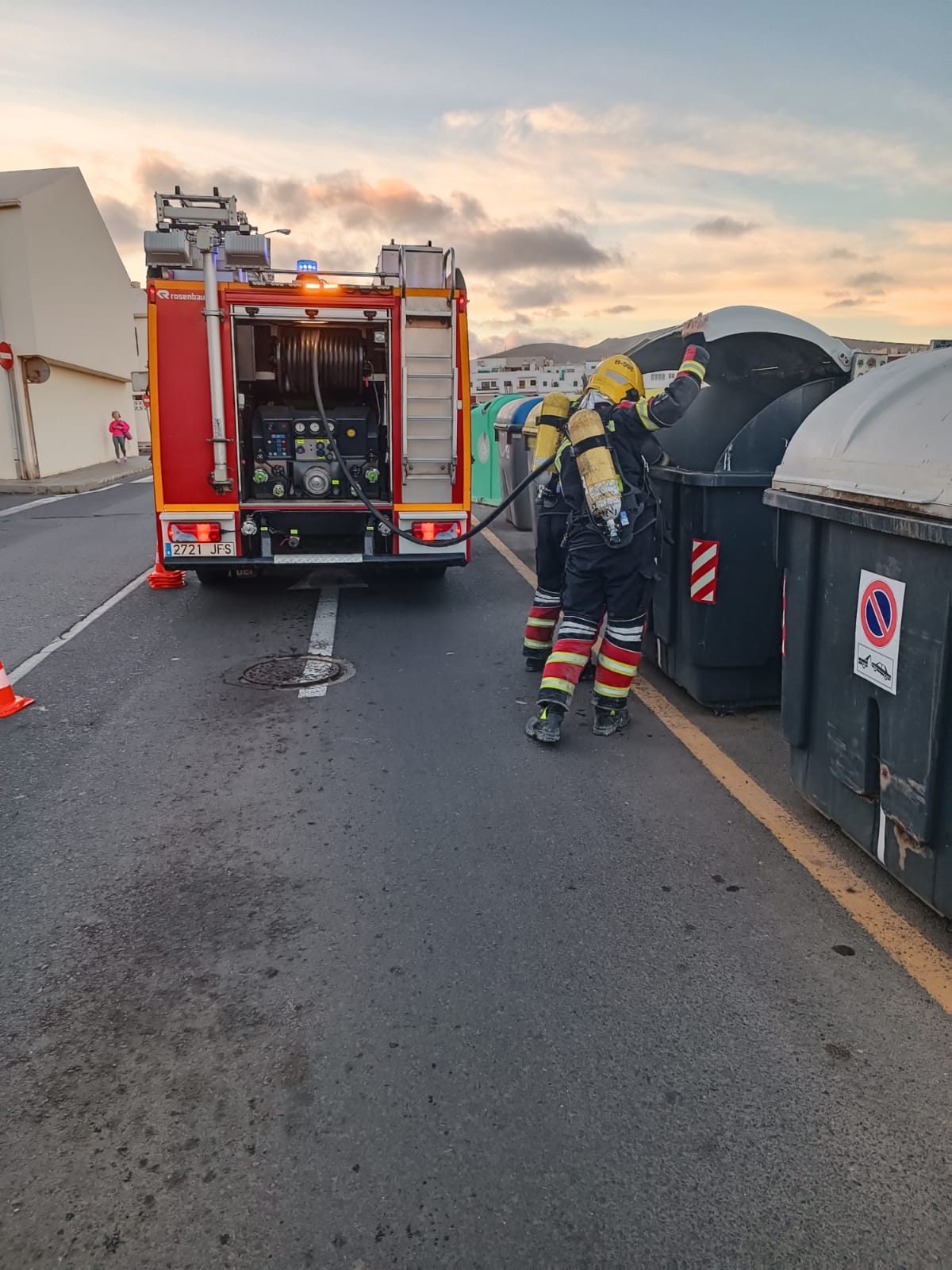 Ayer, los bomberos fueron alertados de que había fuego en un contenedor de basura orgánica de la calle Tenderete. Una vez en el lugar, procedieron a la extinción de las llamas con agua pulverizada.