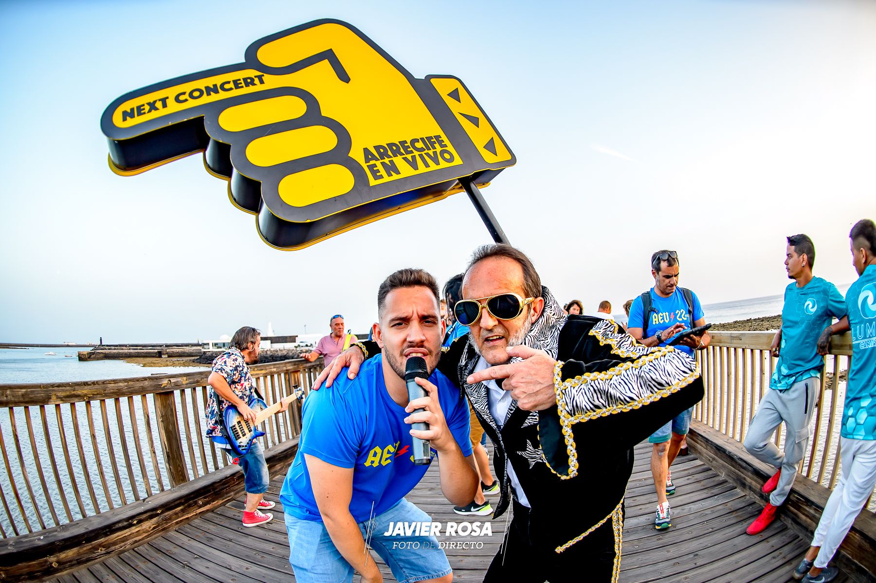 La banda The Walking Matt condujo a un multitudinario pasacalles de espectadores, que caminaron al ritmo de versiones de hits españoles e internacionales. El público, detrás del Rey de Arrecife en Vivo, atravesó el puente del islote y siguió desfilando por el Parque Islas Canarias.