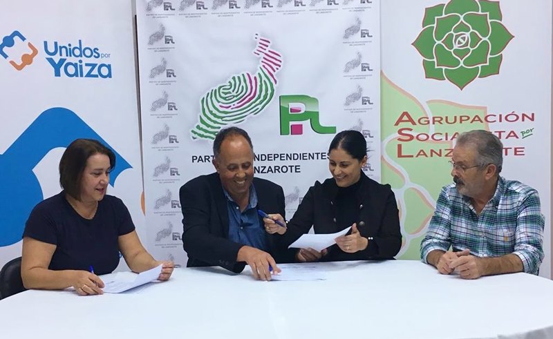 Representantes de Unidos por Yaiza (UPY), Partido de Independientes de Lanzarote (PIL) y Agrupación Socialista por Lanzarote (ASL) sellaron este jueves la alianza electoral que lleva a estos tres partidos políticos a presentarse juntos al Cabildo de Lanzarote y los siete ayuntamientos de la Isla, sin descartar el Parlamento de Canarias, en la contienda electoral del próximo 26 de mayo, “un espacio de unión de fuerzas capaz de sumar a much@s lanzaroteñ@s desde unas propuestas y perspectivas que nacen desde la aceptación de la pluralidad y de la defensa del respeto mutuo”.