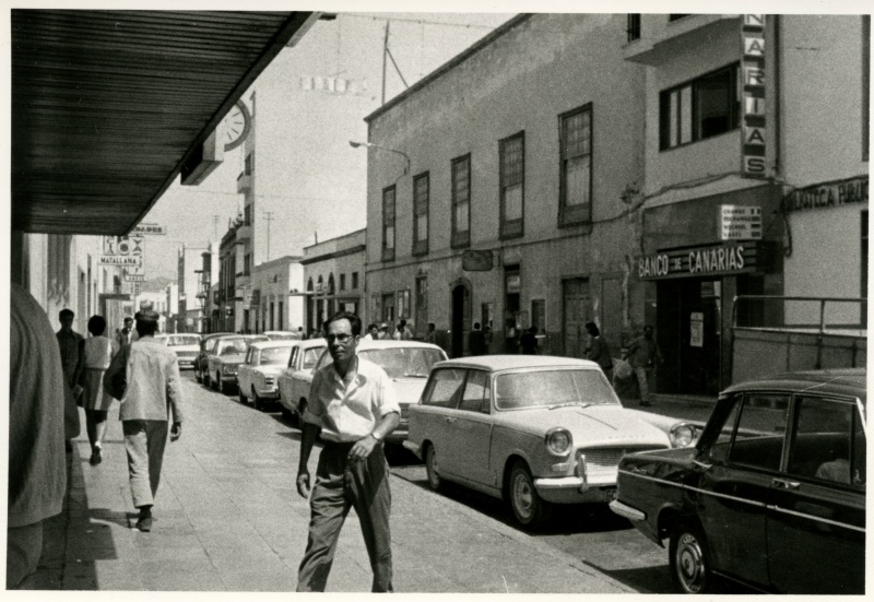 Un poco más allá, en la esquina de lo que ahora es el bazar Sam, en el número 3 de la calle, estaba la oficina de Telefónica, que acabó quemándose, y posteriormente se ubicó allí un comercio muy conocido en la época ‘Cruz Gómez’, donde vendían maletas, neveras y un poco de todo. En el número 5, donde ahora está la Banca March, se ubicaba la cafetería Brasilia, que era del mismo propietario que Janubio, don Pepe Reyes, y que era muy conocido por los buenos churros que hacía. El Cabildo viejo era en aquel entonces el Cabildo en funcionamiento y se mantiene tal y como era. En el número 7, que es donde se ubicó hace unos años la pastelería Valery, estuvo la primera oficina del Banco Bilbao, en un edificio perteneciente a la familia Negrín, y en el número 8, donde ahora se ubica el BBVA, había una zapatería llamada Reija. Todos eran edificios de una planta o dos, como mucho, hasta que en los 70 se tiró todo. Ya entonces la política de Patrimonio era deficiente.