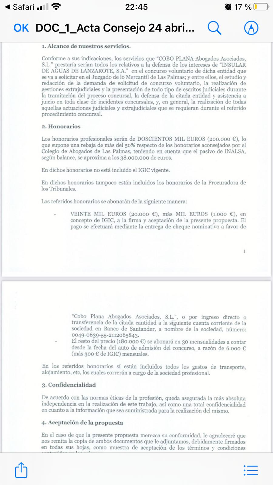 - Vaya por delante que sigo considerando al juez Cobo un caballero, pero sin duda ha tenido un problema de memoria, como él mismo reconoció en su declaración y ahora veremos: El juez Cobo declaró que su reclamación de 80.000 € en sede judicial el día 9 de octubre fue porque yo le había cesado, pero el 9 de octubre es sencillamente imposible que yo le hubiera cesado porque entonces la presidenta todavía era Manuela de Armas. Dicha reclamación es la prueba irrefutable de su renuncia a seguir en el proceso, a seguir cobrando según lo ofertado y “contratado” por mi antecesora.